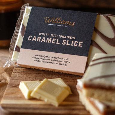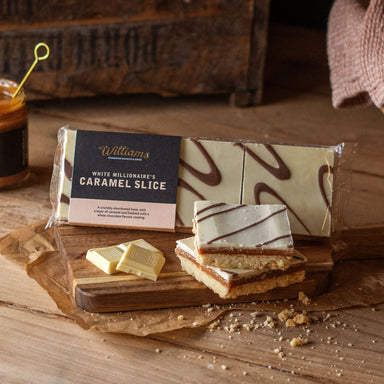 The White Millionaire's Caramel Slice from Williams Handbaked: Crumbly shortbread topped with a thick layer of caramel and finished with a creamy w...